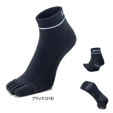 ●カラー:ブラック(278) ●サイズ:S(19.0〜21.5cm)、M(22.0〜24.5cm)、L(25.0〜27.0cm)、O(27.5〜29.0cm) ●素材:綿、アクリル、その他 ●特徴:抗菌防臭、5本指ソックス、ノーマル丈 ●原産国:日本 バタフライ |