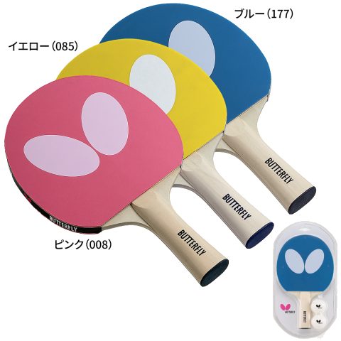 【ラバーばりラケット】 ●カラー:ピンク(008)、イエロー(085)、ブルー(177) ●ブレード構成:木材5枚合板 ● 40mmボール2個付き ●原産国:中国 ※公式試合では使用できません ※レジャー用としてご利用ください ※両面にラバーが貼られています ※ラバーばりラケットはラバーの貼り替えができません バタフライ |