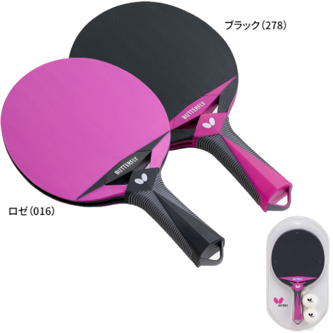 【ラバーばりラケット】 ●カラー:ロゼ(016)、ブラック(278) ● 40mmボール2個付き ●ブレード構成:TPE、PP ●原産国:中国 ※公式試合では使用できません ※レジャー用としてご利用ください ※両面にラバーが貼られています ※ラバーばりラケットはラバーの貼り替えができません バタフライ |