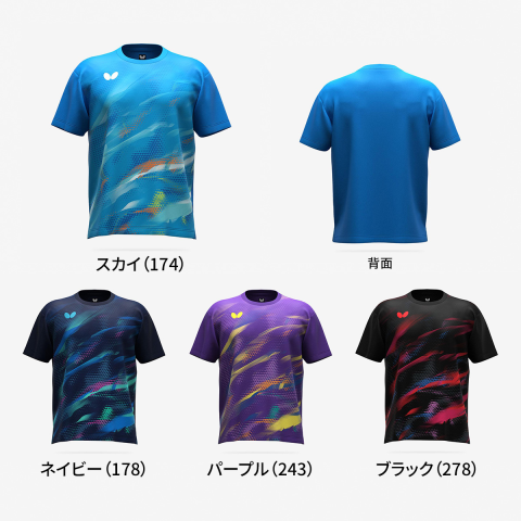 吸水速乾性のある肌触りの良い生地を使用した日本製のTシャツ 男女兼用●カラー:パープル (243)、ブルー (177)、ブラック(278) ●サイズ:SS, S, M, L, O, XO(男女兼用) ●素材:ポリエステル100%/スタティックドライ(セーレン) ●特徴:吸水速乾、伸縮 ●仕上り寸法表(単位:cm):Lサイズ 着丈66、胸回り110、肩幅49、袖丈20 ●原産国:日本 ※本製品は一点ごとに柄の出方が異なりますので、あらかじめご了承ください バタフライ |