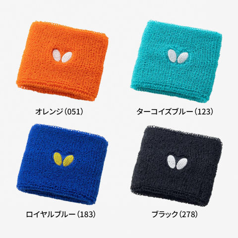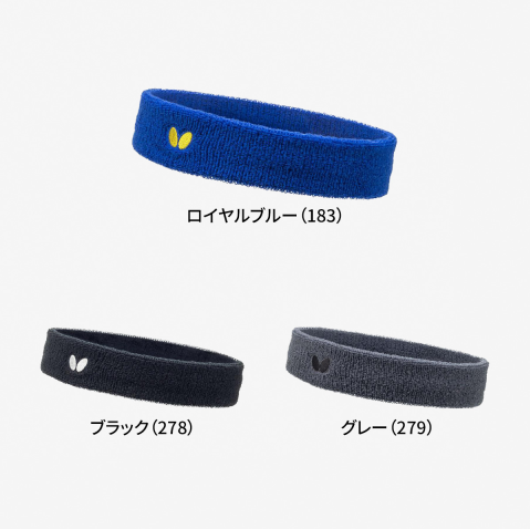 ロイヤルブルー(183)、ブラック(278) ●サイズ:幅7cm(フリーサイズ) ●素材:綿、ポリエステル、アクリル、ナイロン、ポリウレタン ●原産国:日本 ※日本卓球ルール適合 バタフライ |