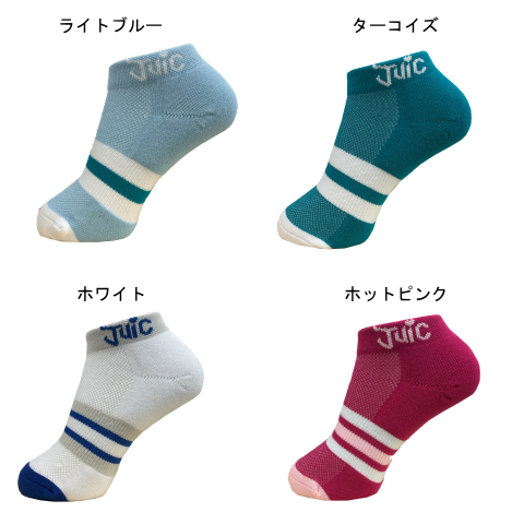 パフォーマンス向上と快適性を追求 9つの機能を搭載した高機能卓球用ソックス ●カラー:ブラック・ネイビー ●サイズ:22cm~24cm ●素材: ポリエステル・綿・ポリウレタン・ナイロン JUIC |