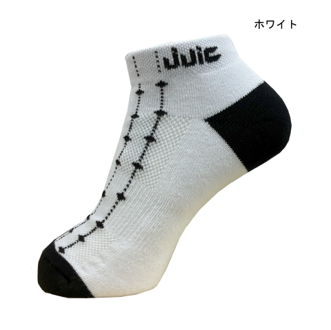 卓球専用機能ソックス 甲の部分にはメッシュ地を使いムレを防止。裏地にはパイル地の使用で柔らかいフィット感とクッション性を向上。 フットワークなどの激しい動きにも、ズレないホールド設計。 ※スポット商品のため、在庫が無くなり次第終了となります。 ●カラー:ブラック・ホワイト・ターコイズ ●サイズ:25cm~27cm ●素材:綿・ナイロン・スパンデックス・ポリエステル ●Made in China JUIC |